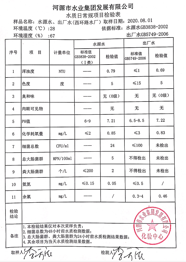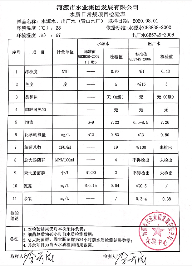 2020年8月1日水質(zhì)檢驗(yàn)報(bào)告