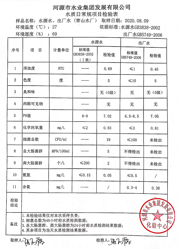 2020年8月9日水質(zhì)檢驗(yàn)報(bào)告