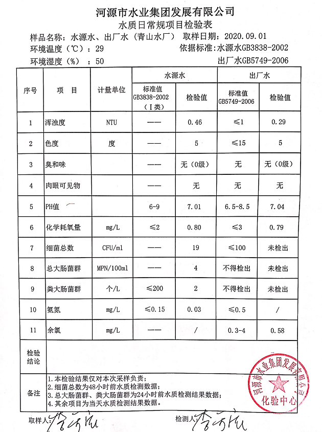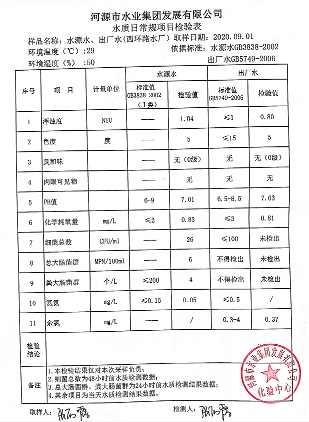 2020年9月1日水質(zhì)檢驗(yàn)報(bào)告