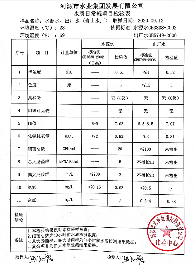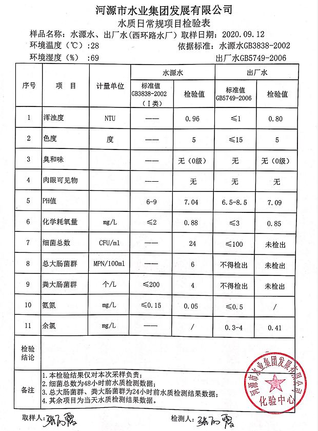 2020年9月12日水質(zhì)檢驗(yàn)報(bào)告