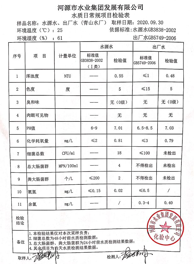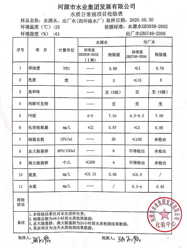 2020年9月30日水質(zhì)檢驗(yàn)報(bào)告