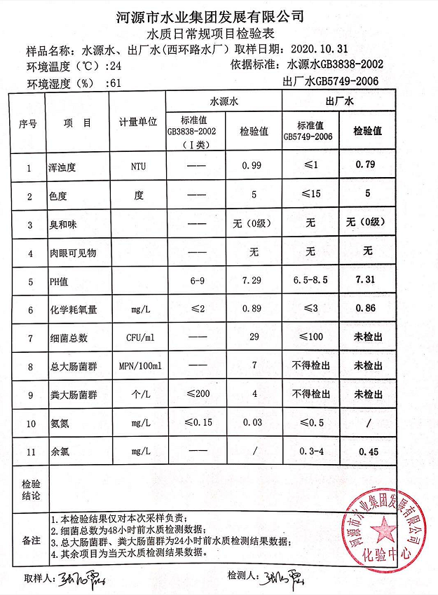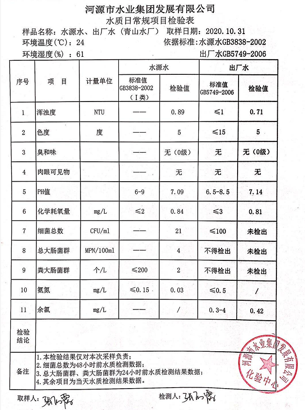 2020年10月31日水質(zhì)檢驗(yàn)報(bào)告