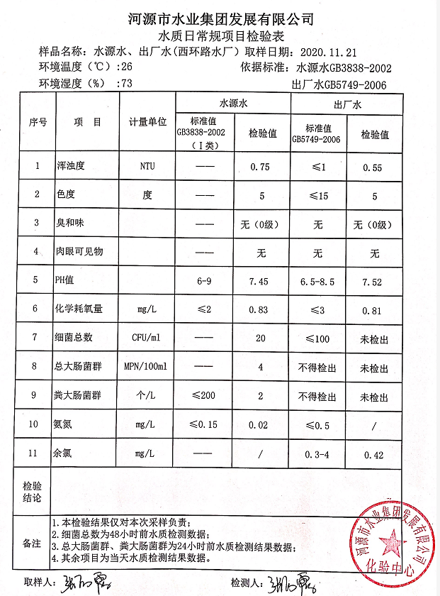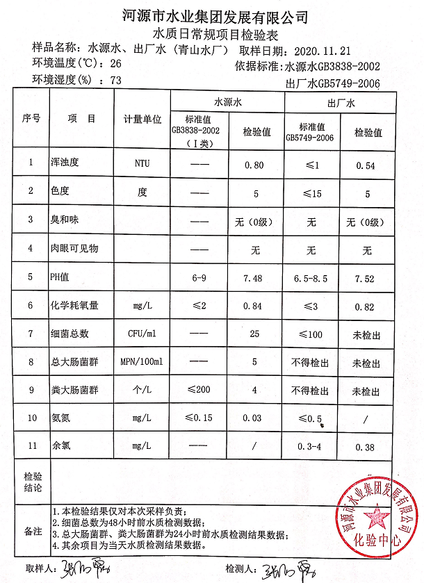 2020年11月21日水質(zhì)檢驗(yàn)報(bào)告