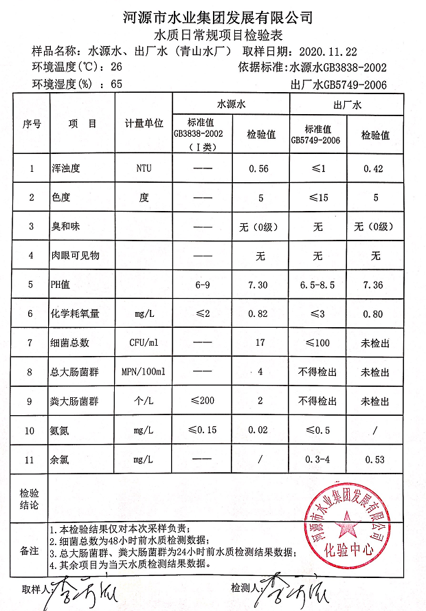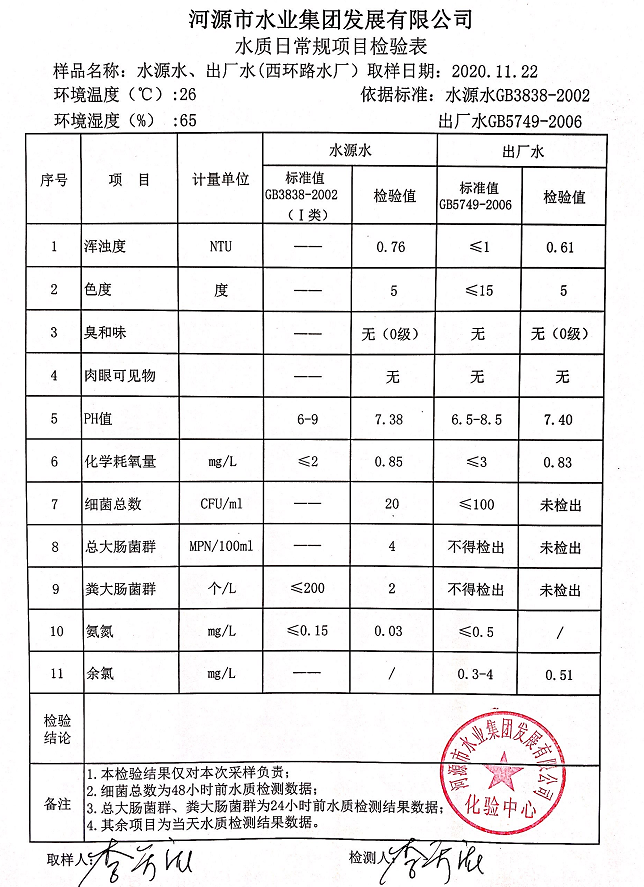2020年11月22日水質(zhì)檢驗(yàn)報(bào)告