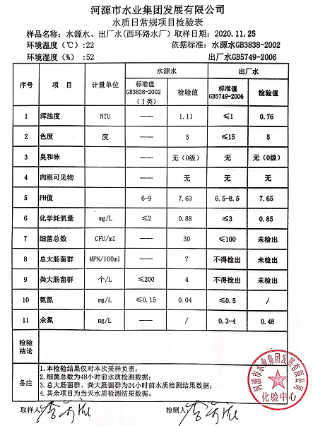 2020年11月25日水質(zhì)檢驗報告