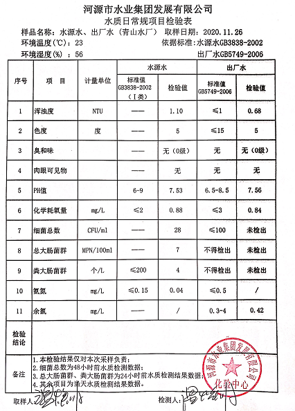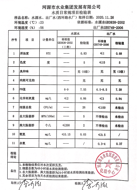 2020年11月26日水質(zhì)檢驗(yàn)報(bào)告