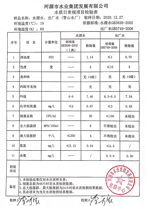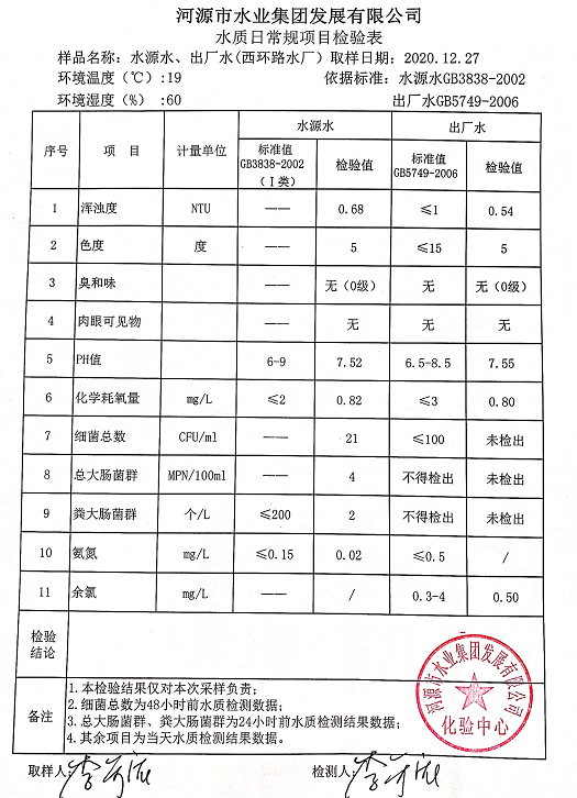 2020年12月27日水質(zhì)檢驗報告