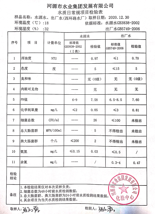 2020年12月30日水質檢驗報告