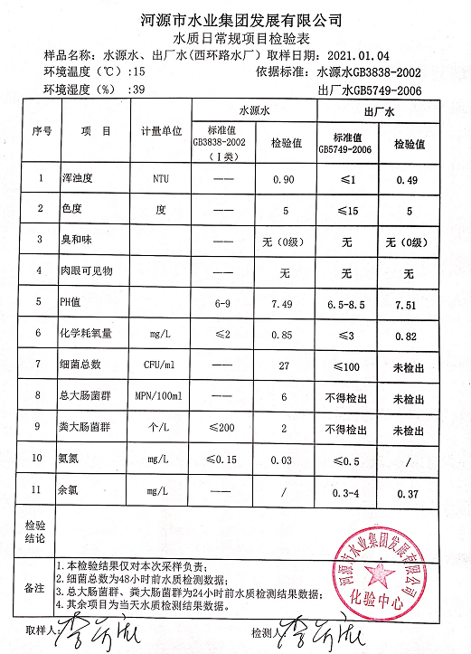 2021年1月4日水質(zhì)檢驗(yàn)報(bào)告