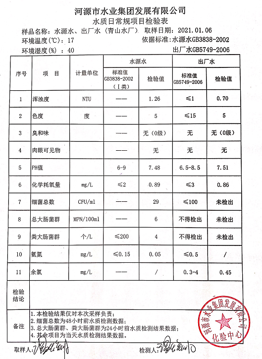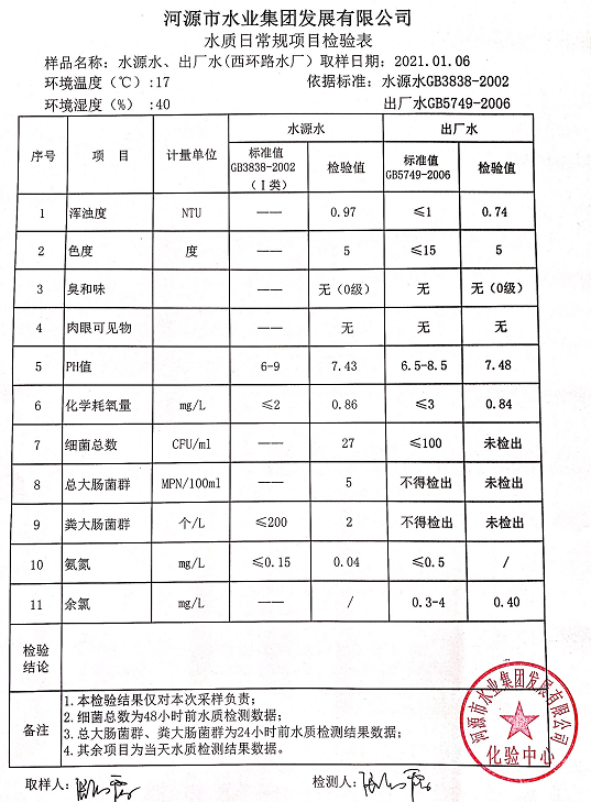 2021年1月6日水質(zhì)檢驗(yàn)報(bào)告