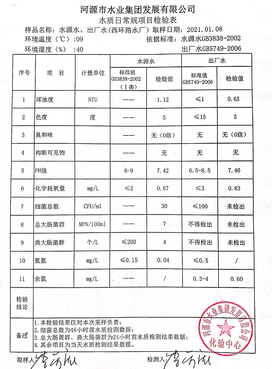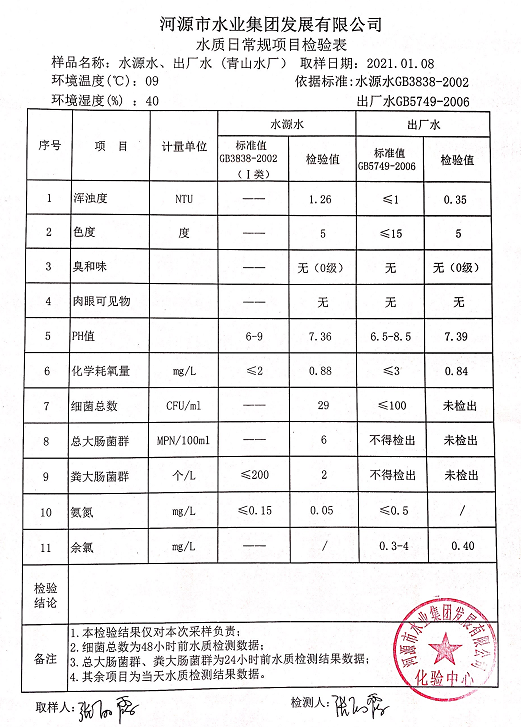 2021年1月8日水質(zhì)檢驗(yàn)報(bào)告