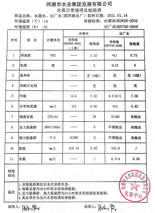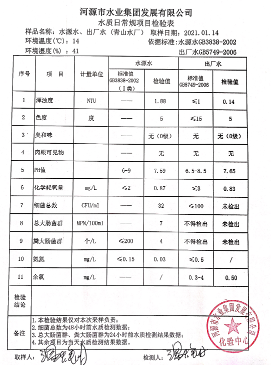 2021年1月14日水質檢驗報告