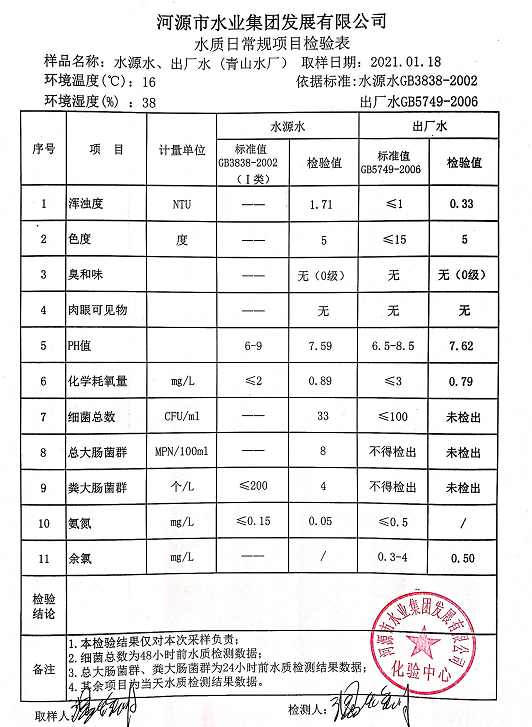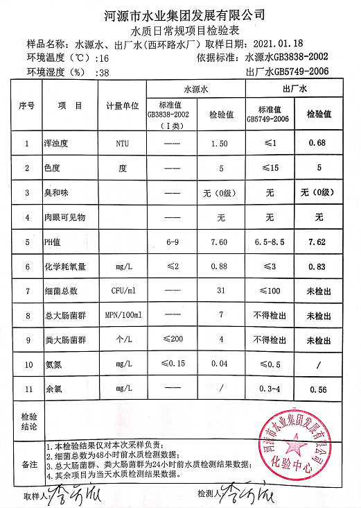 2021年1月18日水質(zhì)檢驗(yàn)報(bào)告