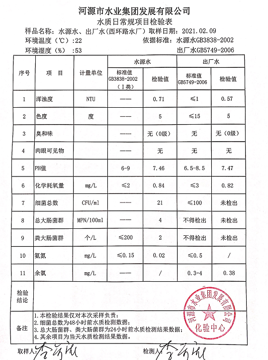 2021年2月9日水質(zhì)檢驗報告