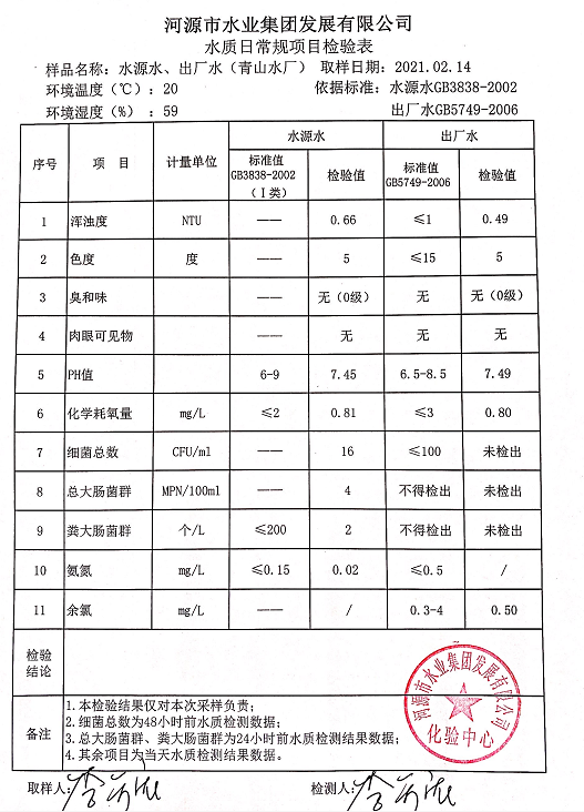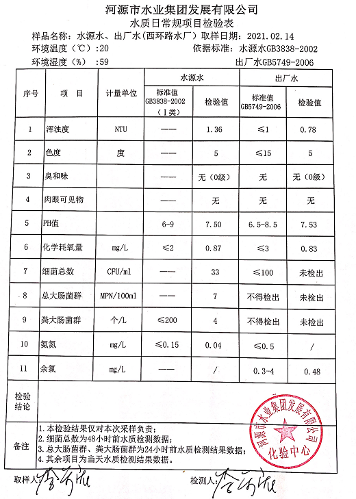 2021年2月14日水質(zhì)檢驗(yàn)報(bào)告