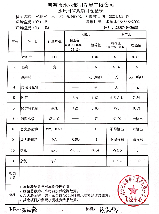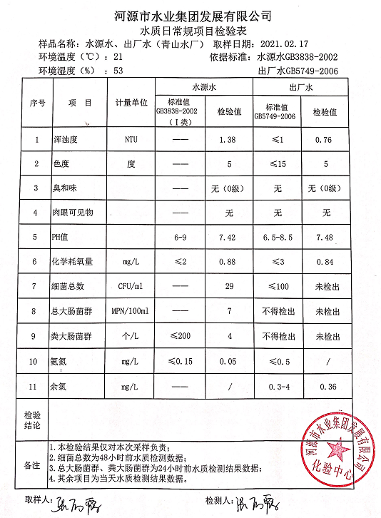 2021年2月17日水質(zhì)檢驗(yàn)報(bào)告