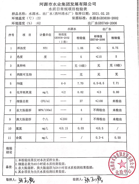 2021年2月25日水質(zhì)檢驗(yàn)報(bào)告