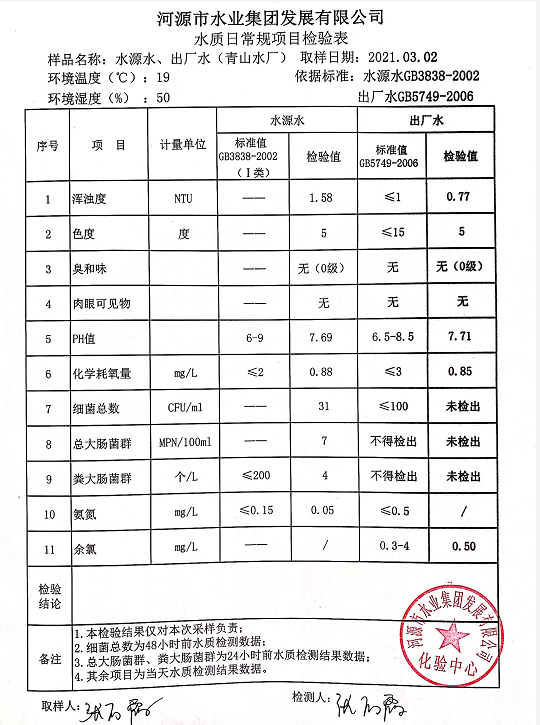 2021年3月2日水質(zhì)檢驗報告