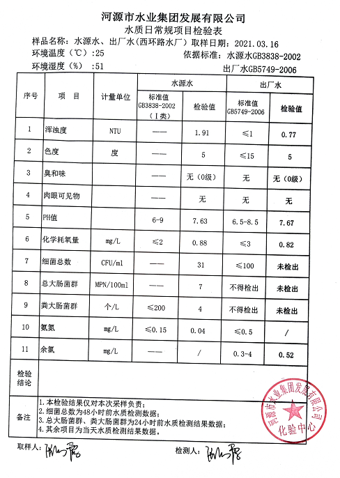 2021年3月16日水質(zhì)檢驗(yàn)報(bào)告