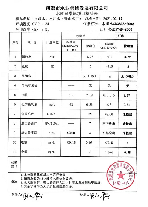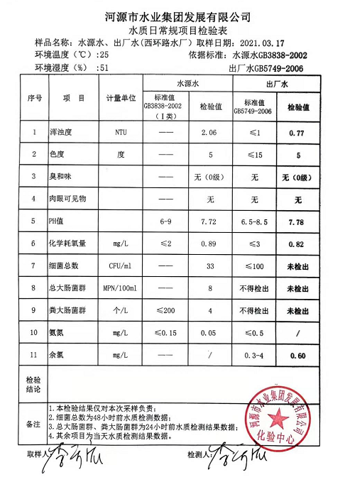 2021年3月17日水質(zhì)檢驗報告