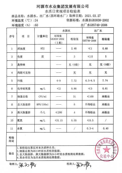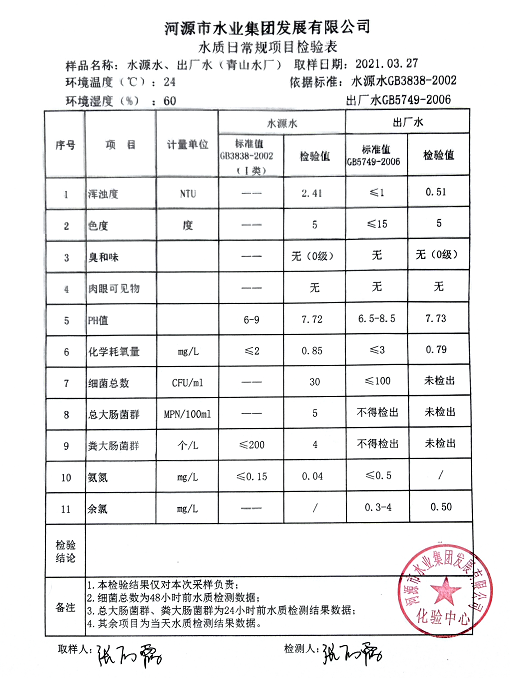 2021年3月27日水質(zhì)檢驗(yàn)報(bào)告