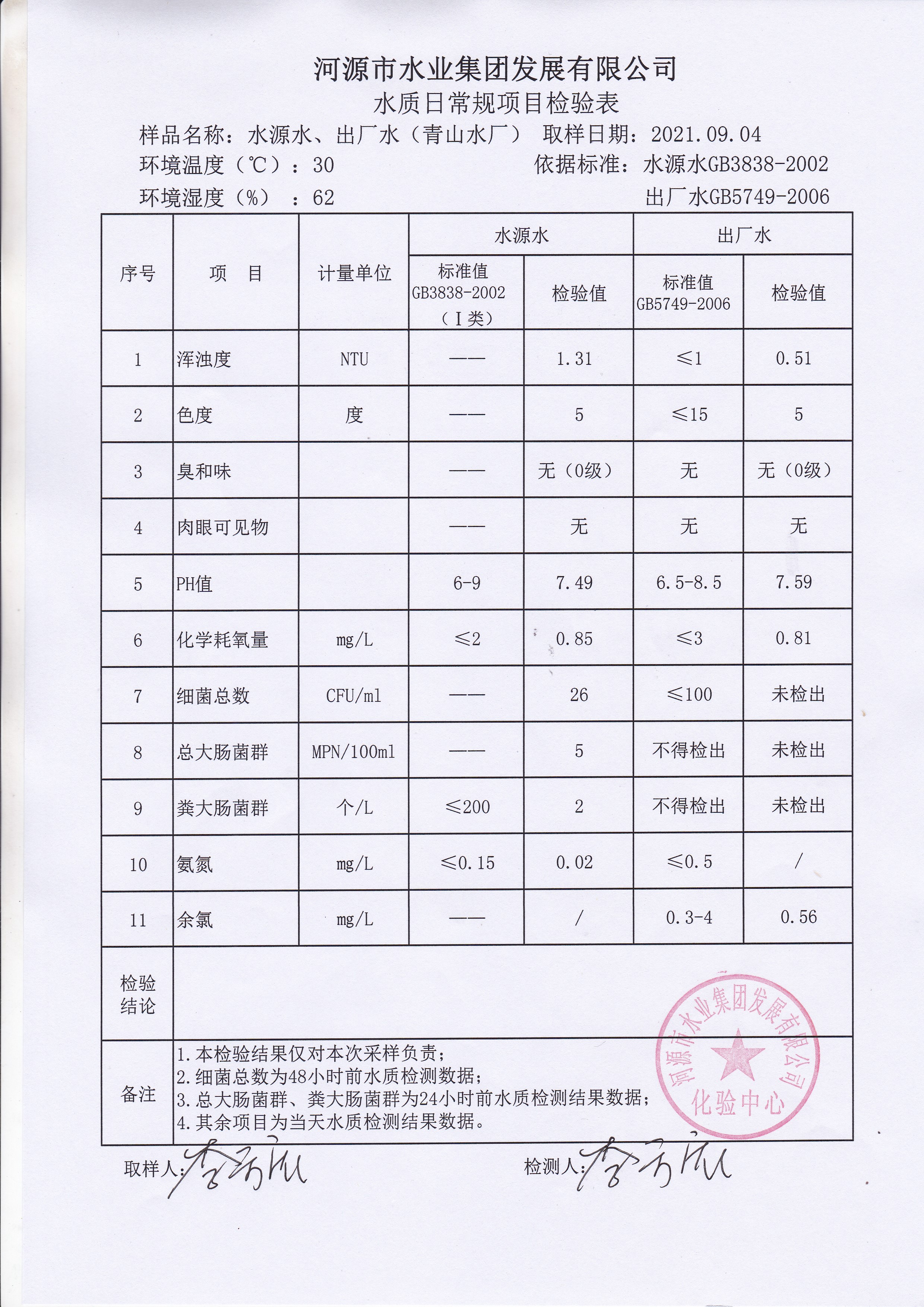 2021年9月4日水質(zhì)檢驗(yàn)報(bào)告 ???