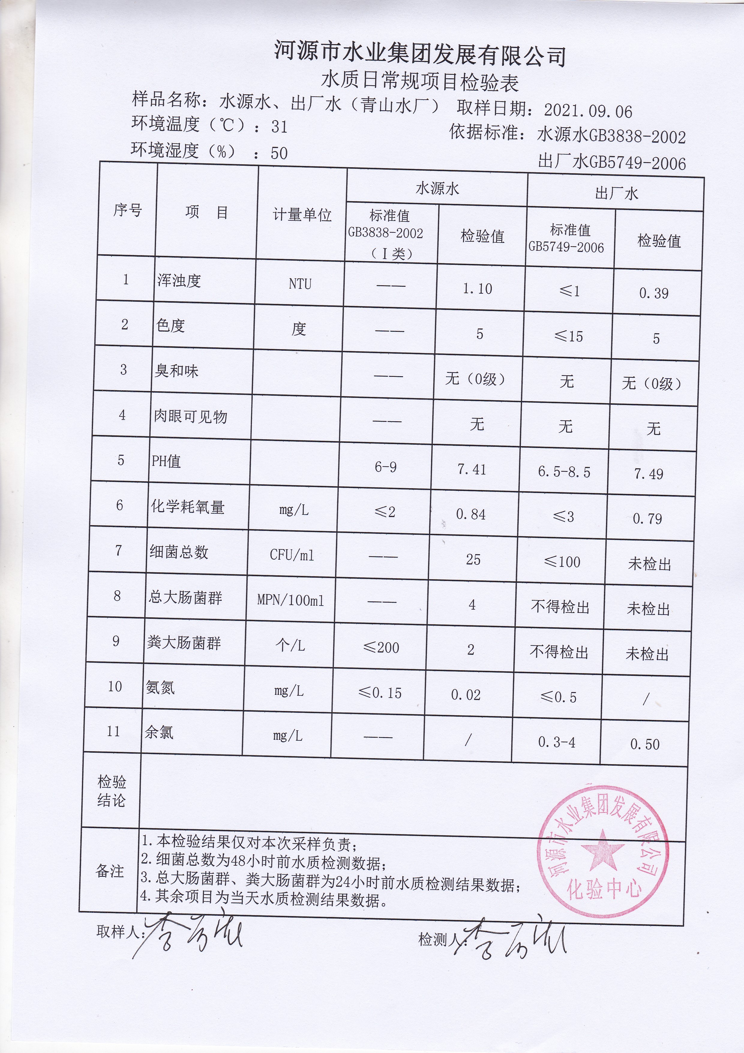 2021年9月6日水質(zhì)檢驗(yàn)報(bào)告 ????