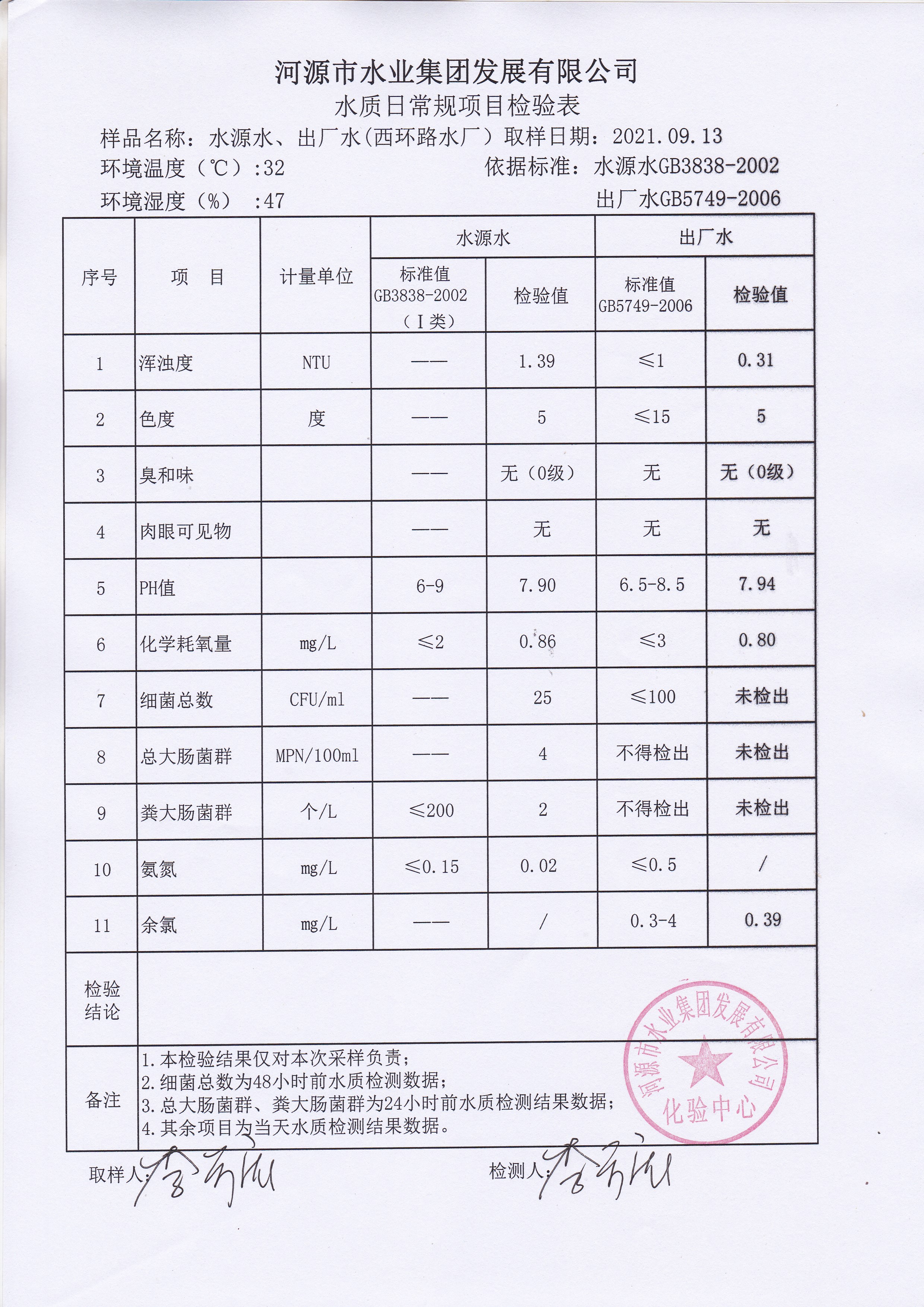 2021年9月13日水質(zhì)檢驗(yàn)報(bào)告 ??
