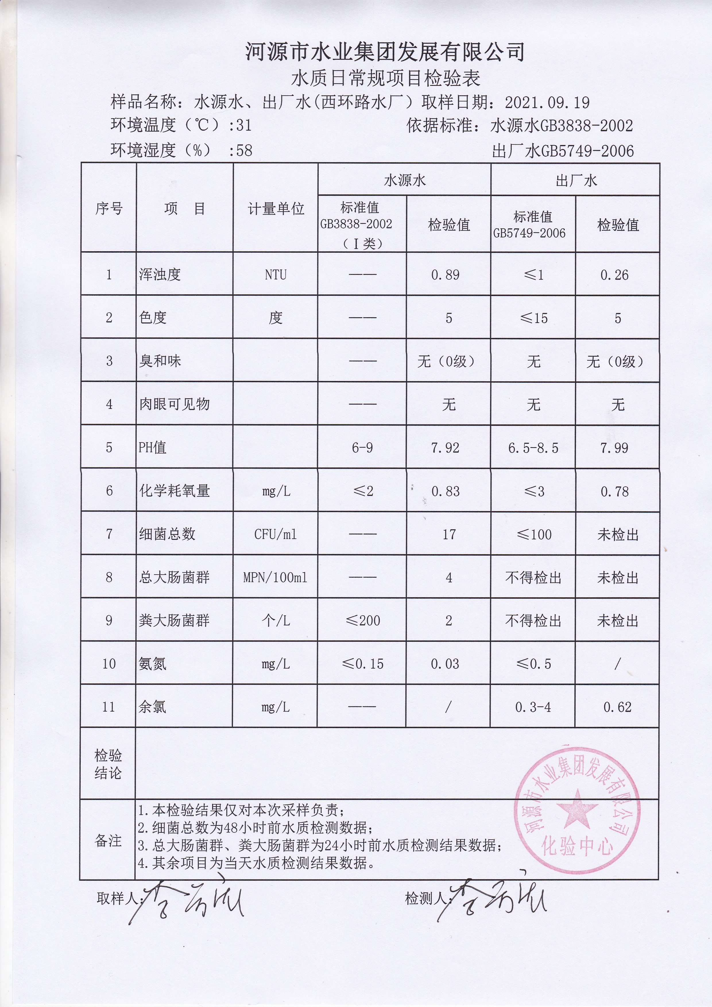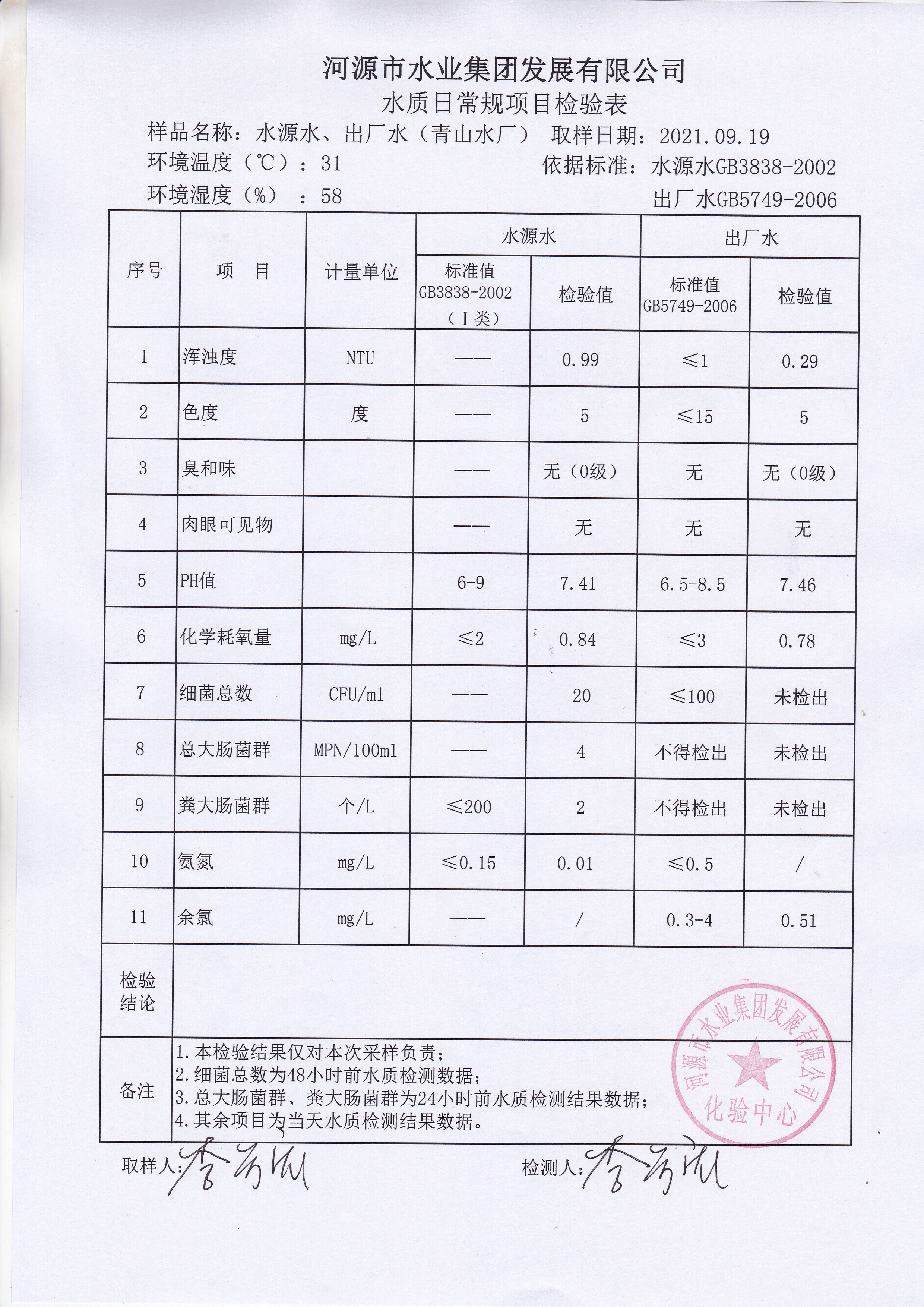2021年9月19日水質(zhì)檢驗(yàn)報(bào)告 ?