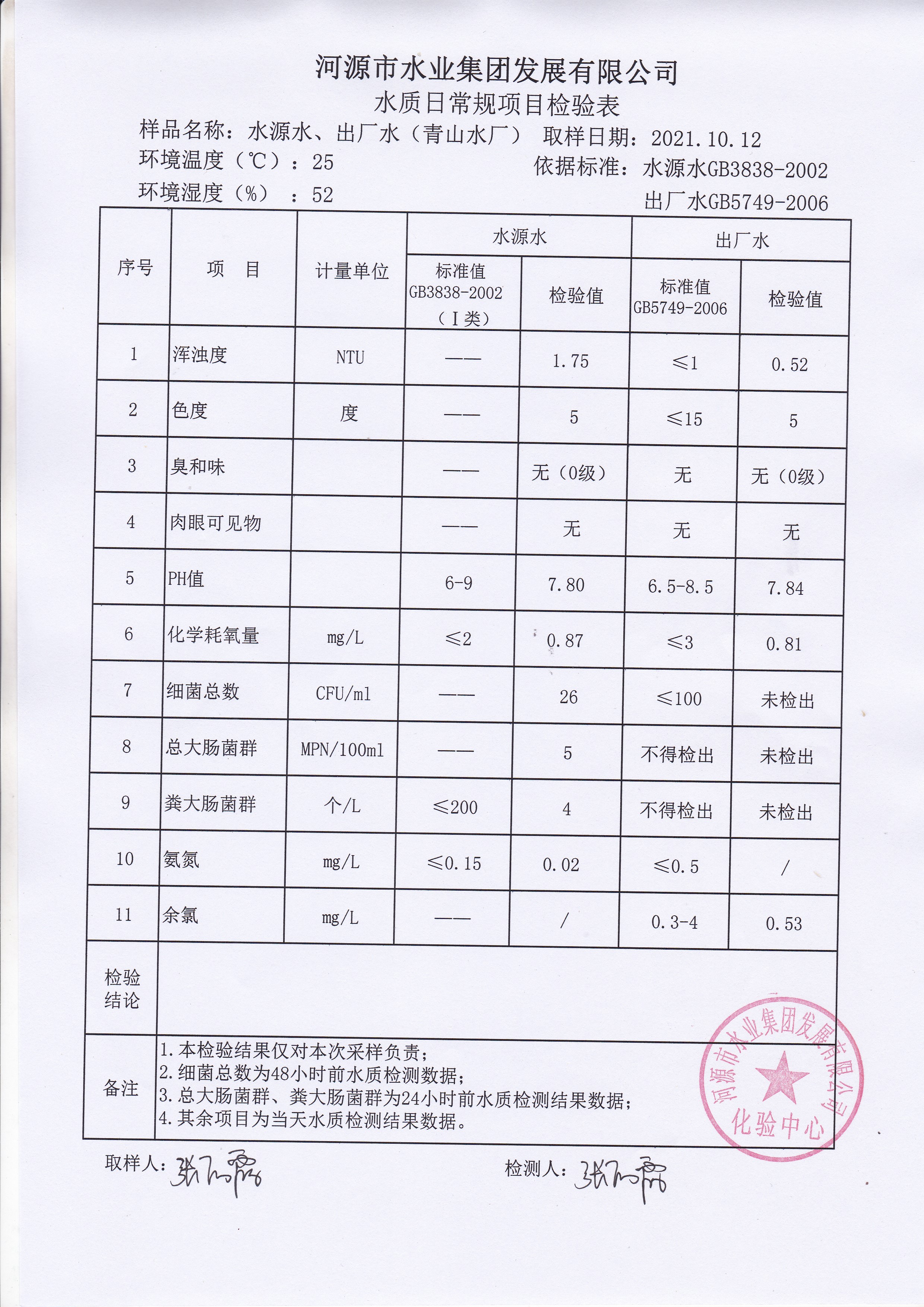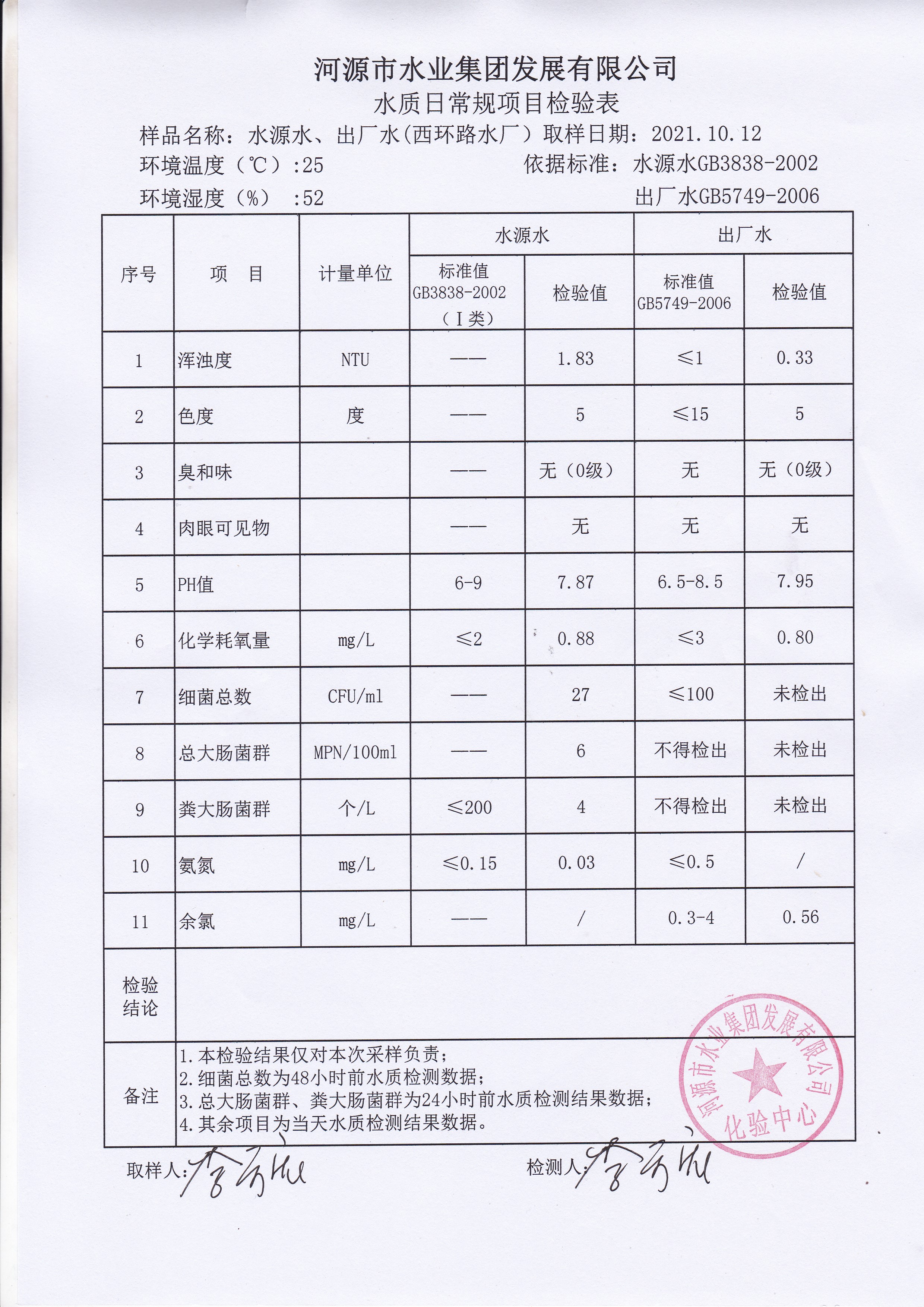 2021年10月12日水質(zhì)檢驗(yàn)報(bào)告