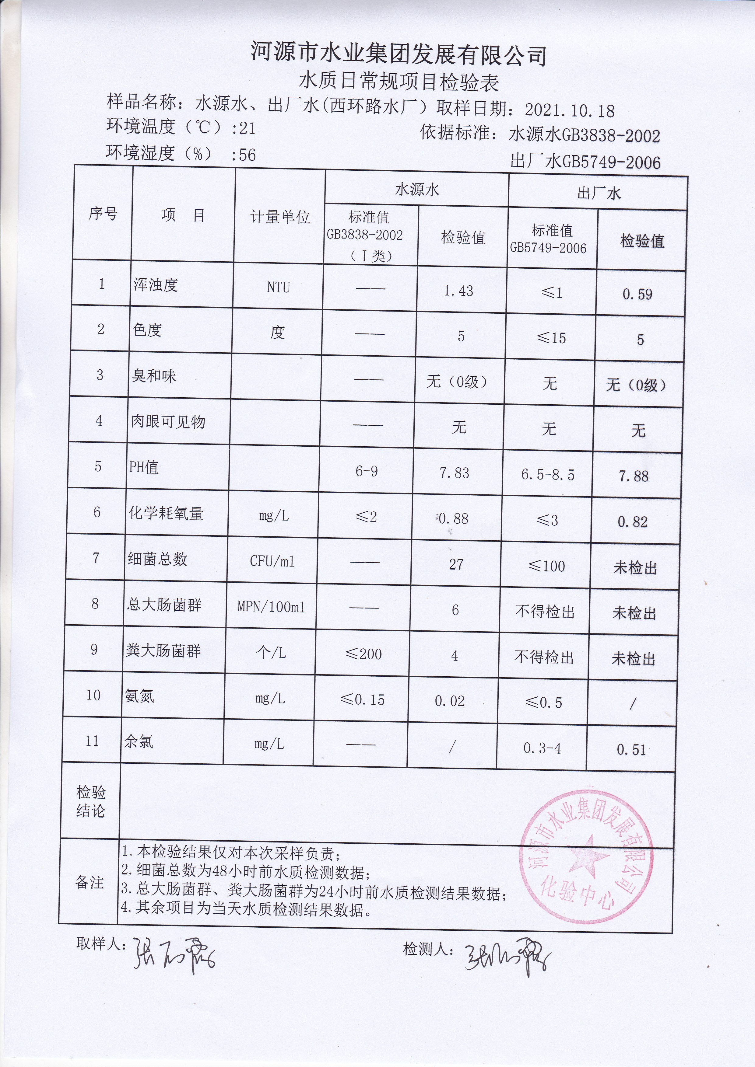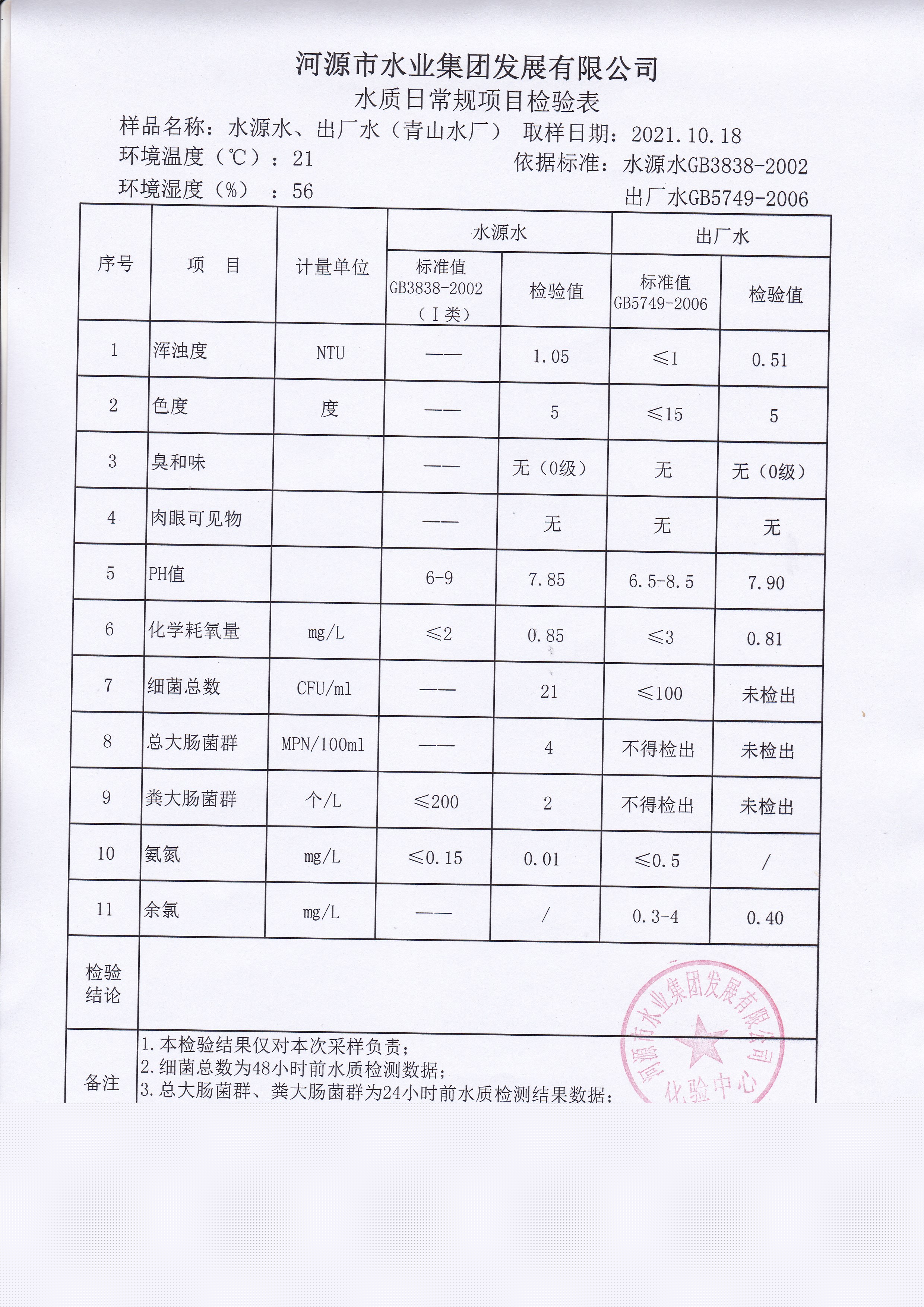 2021年10月18日水質(zhì)檢驗(yàn)報告