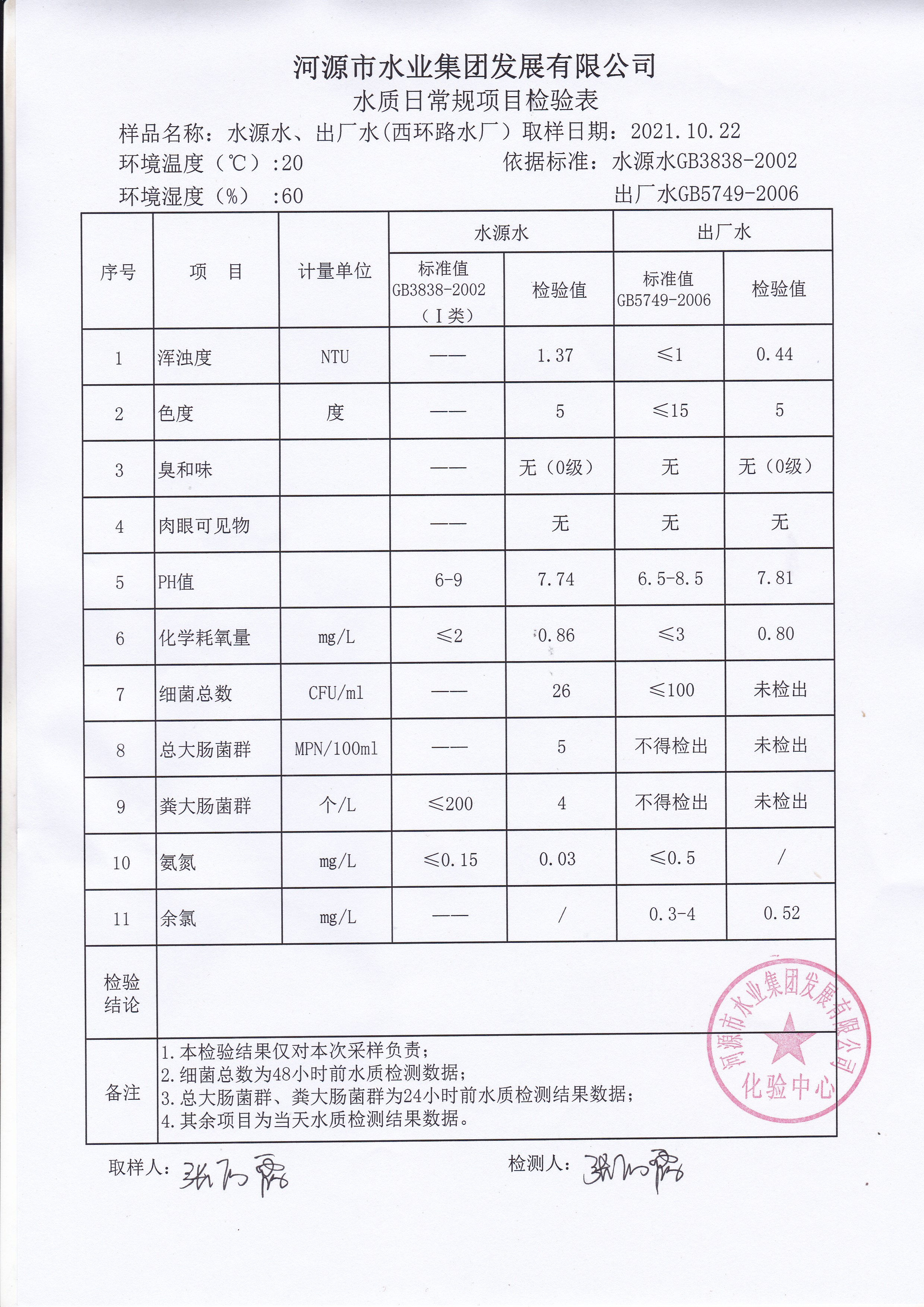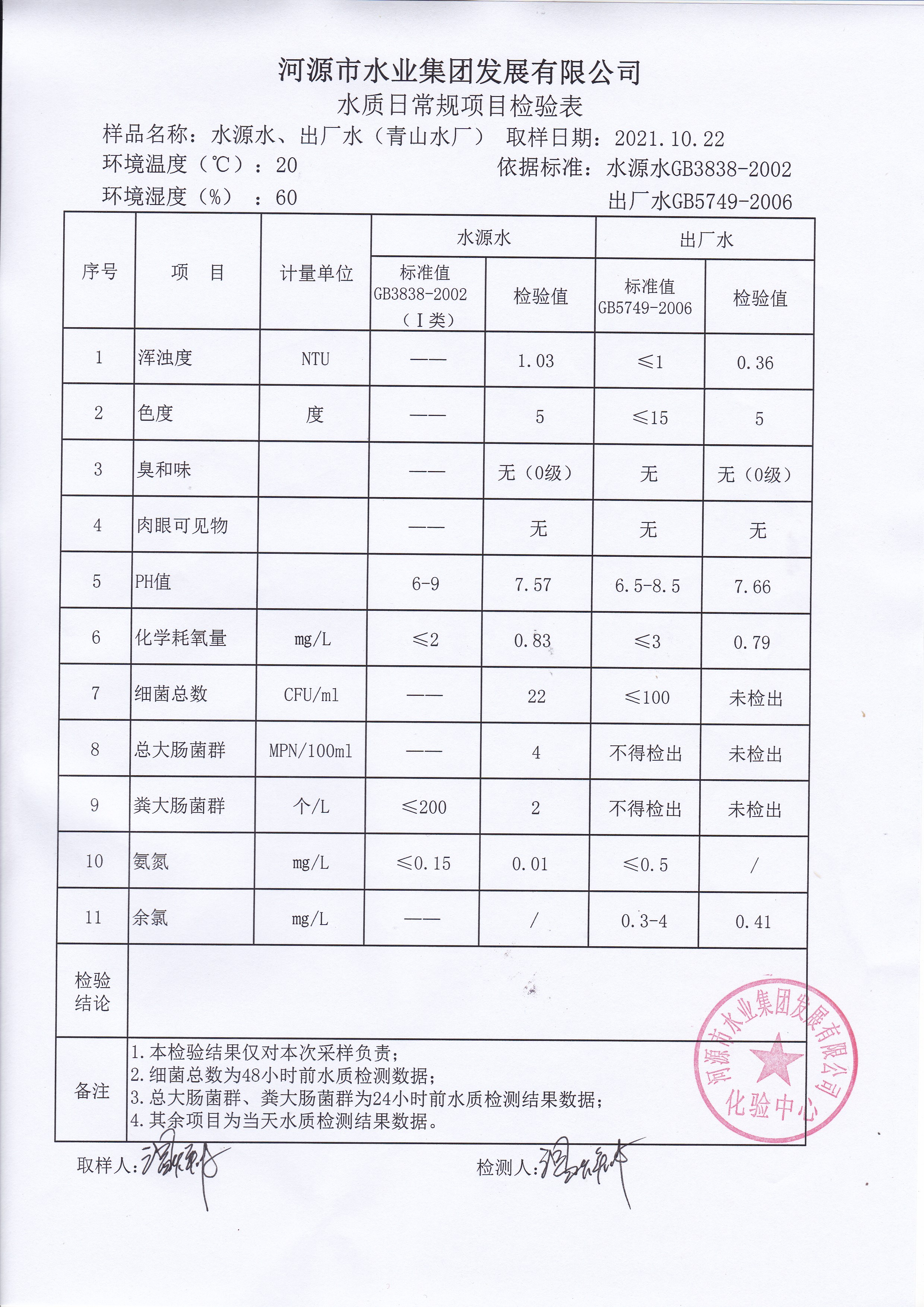 2021年10月22日水質(zhì)檢驗(yàn)報(bào)告