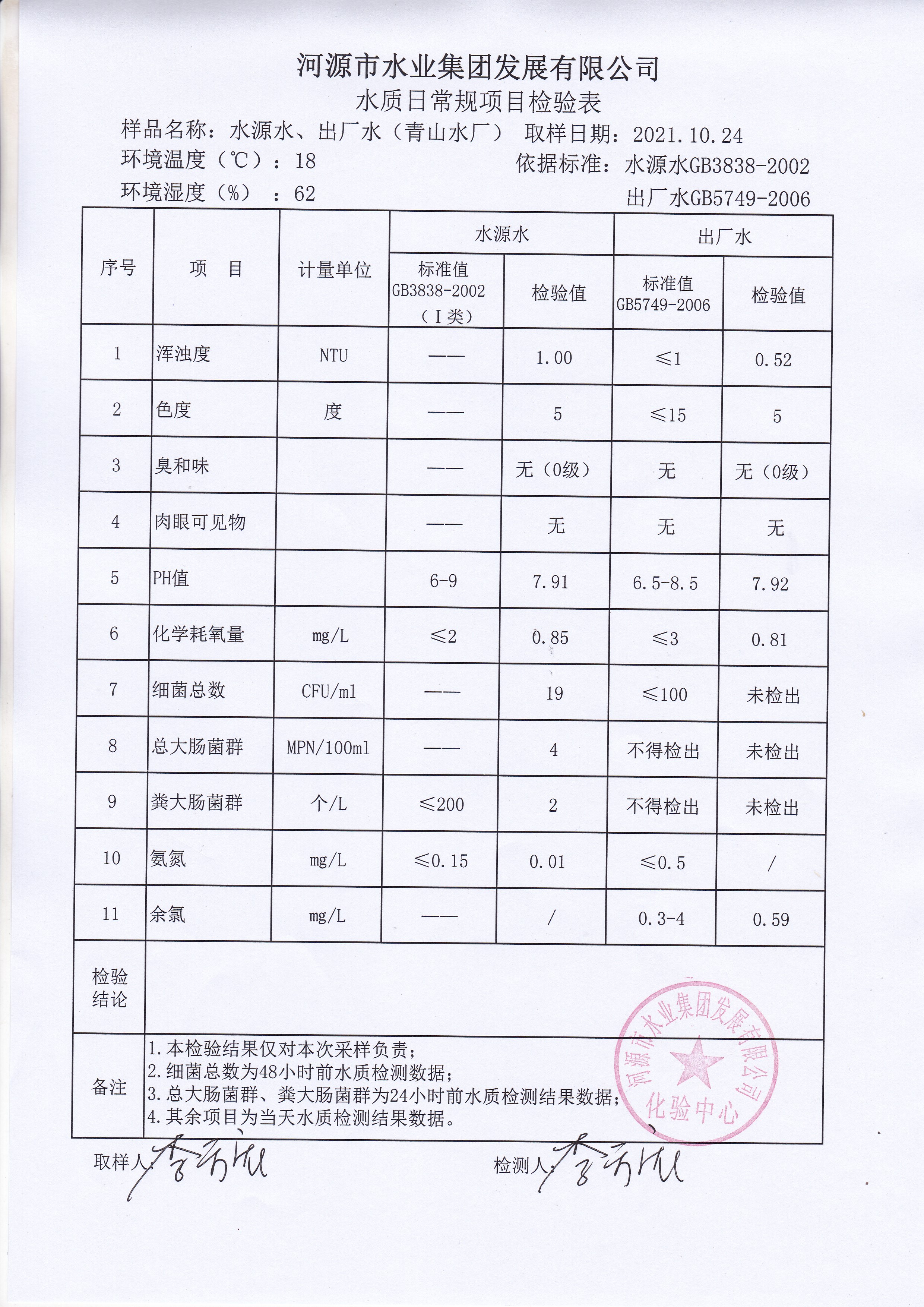 2021年10月24日水質(zhì)檢驗(yàn)報(bào)告