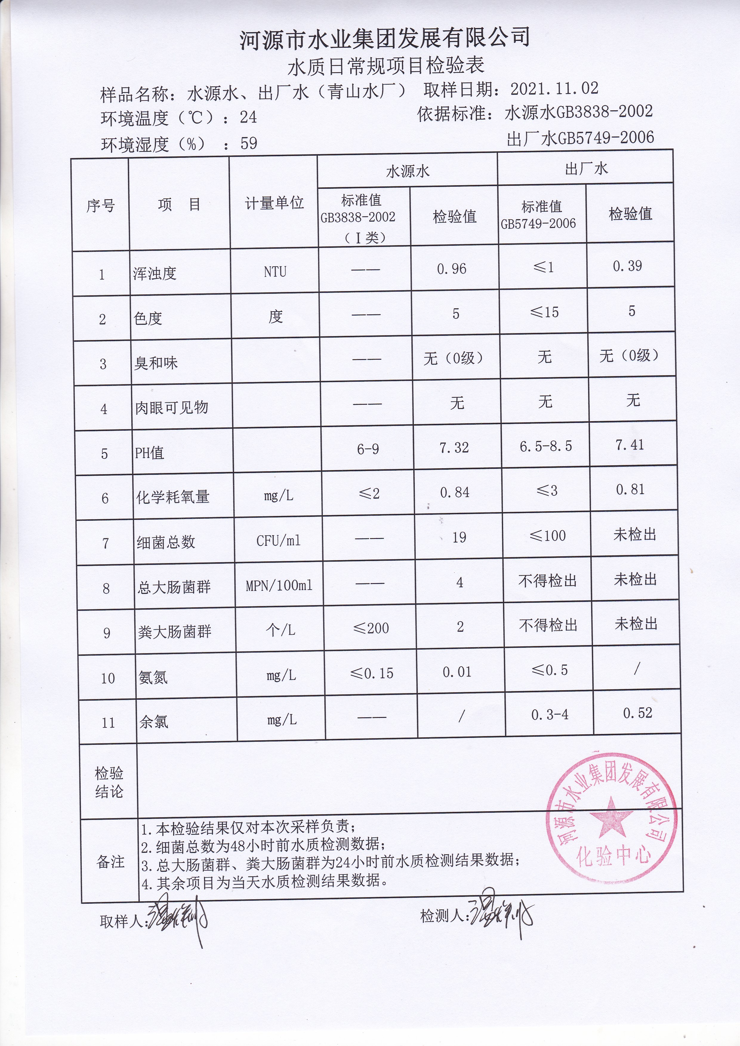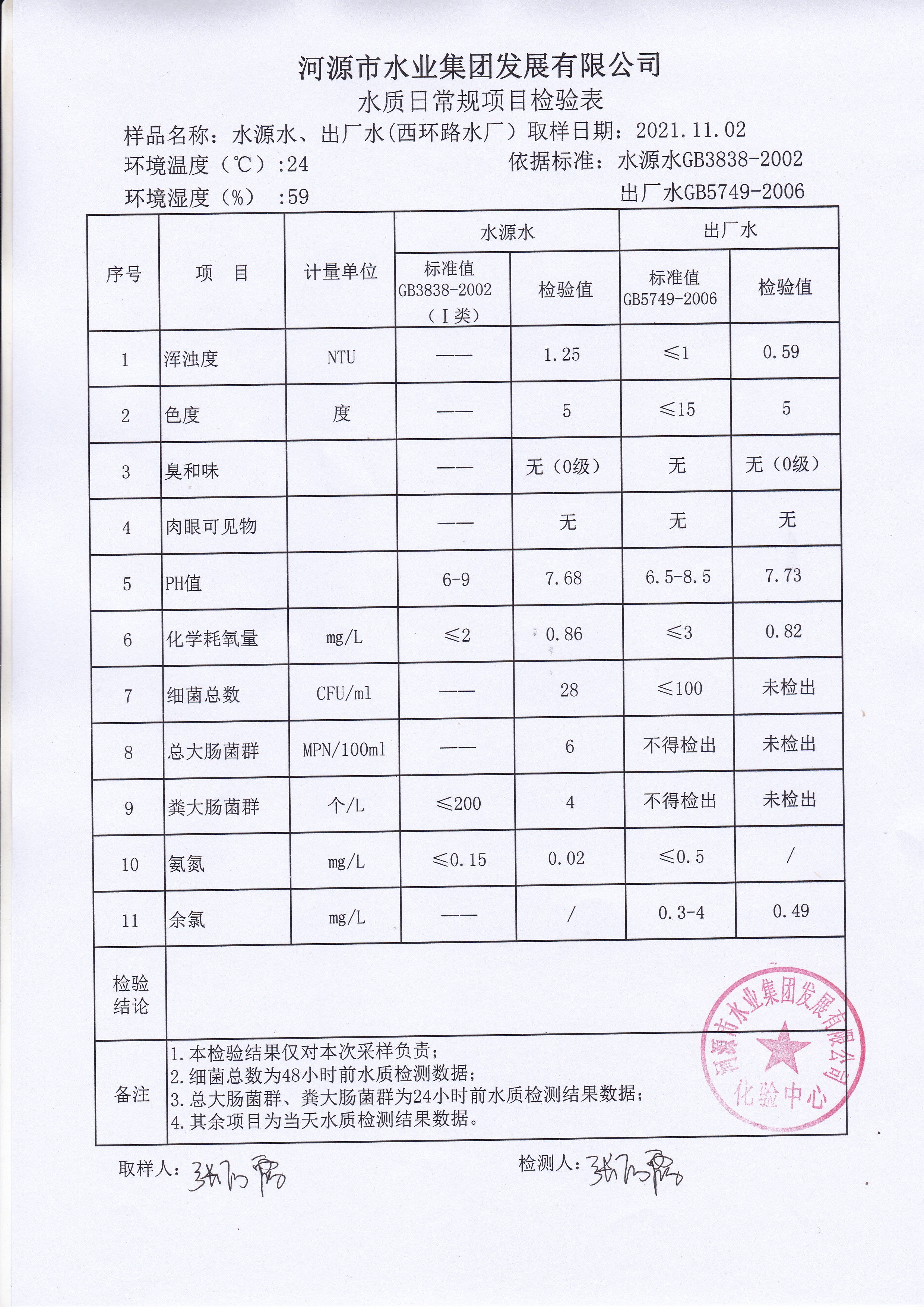 2021年11月2日水質(zhì)檢驗(yàn)報(bào)告