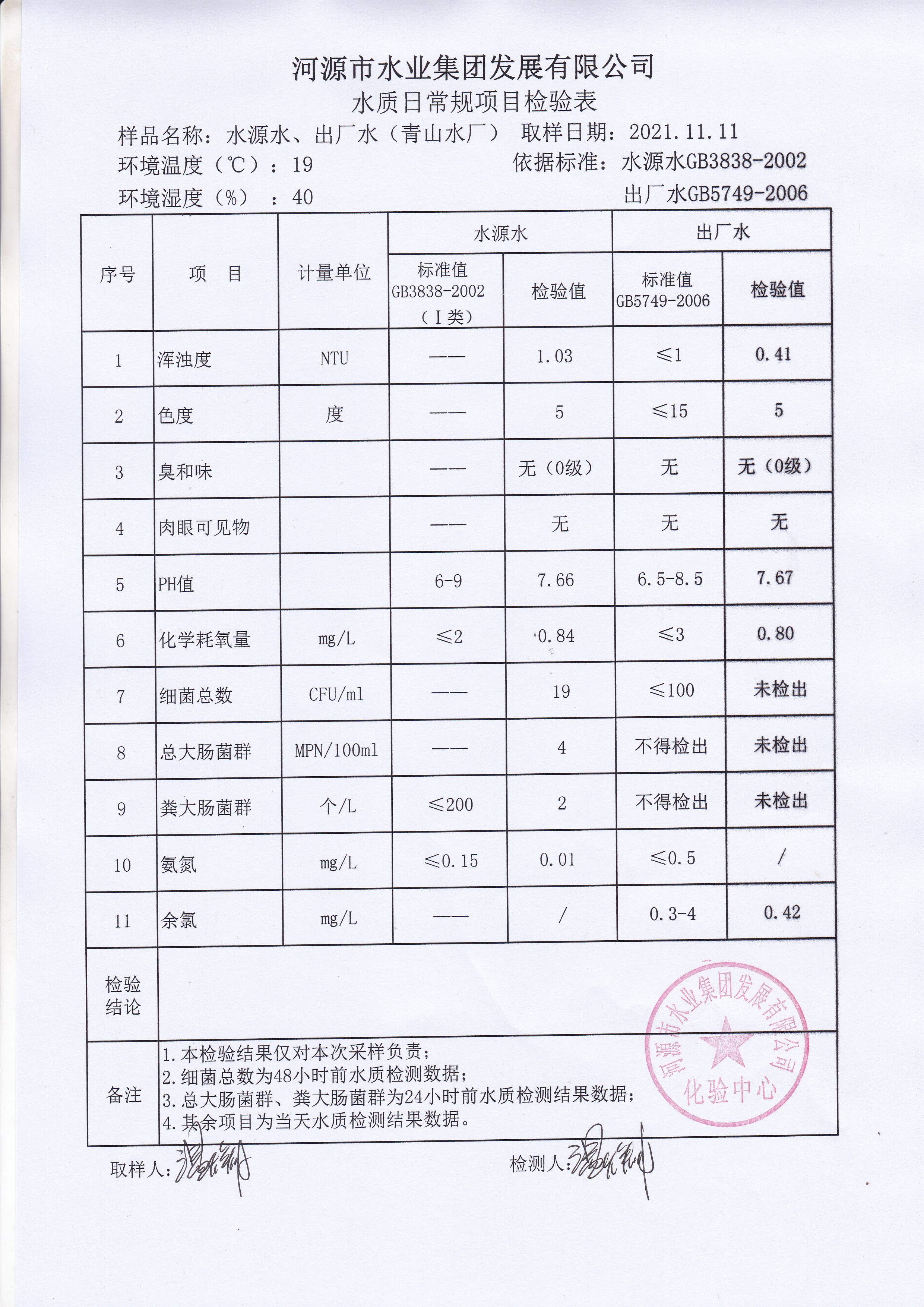 2021年11月11日水質(zhì)檢驗(yàn)報(bào)告