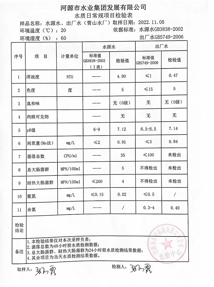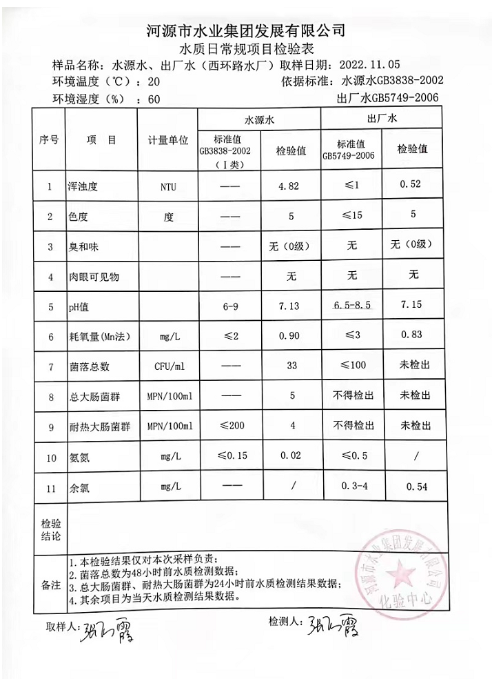 2022年11月5日水質(zhì)檢驗(yàn)報(bào)告