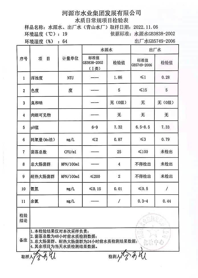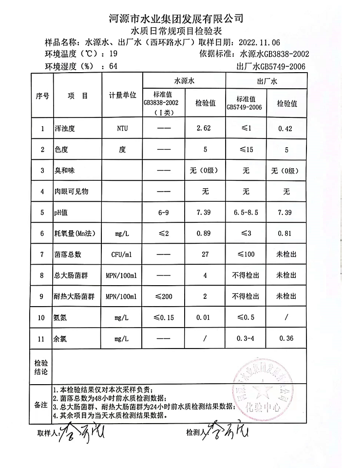 2022年11月6日水質(zhì)檢驗(yàn)報(bào)告