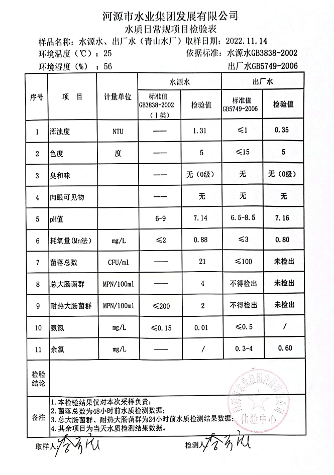 2022年11月14日水質(zhì)檢驗報告