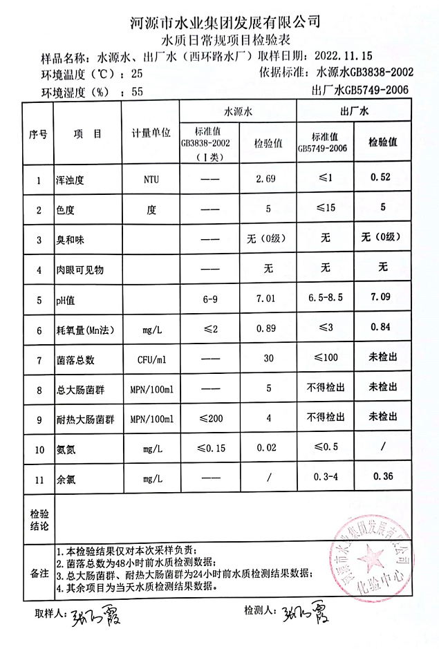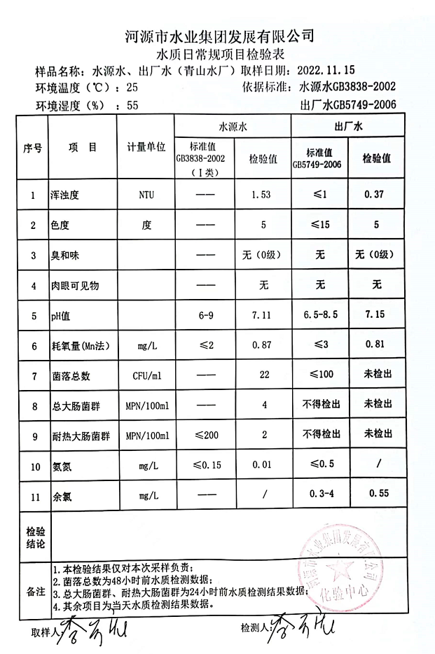2022年11月15日水質檢驗報告