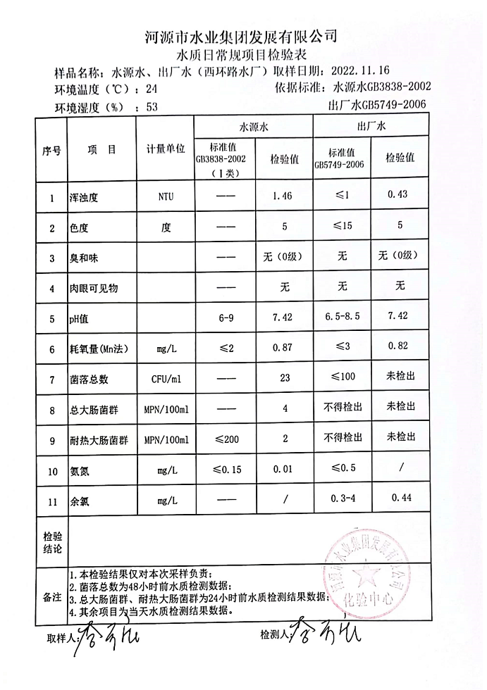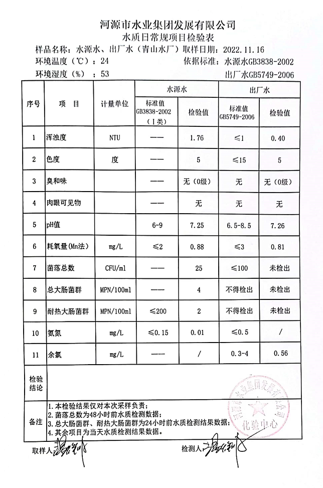 2022年11月16日水質(zhì)檢驗(yàn)報(bào)告