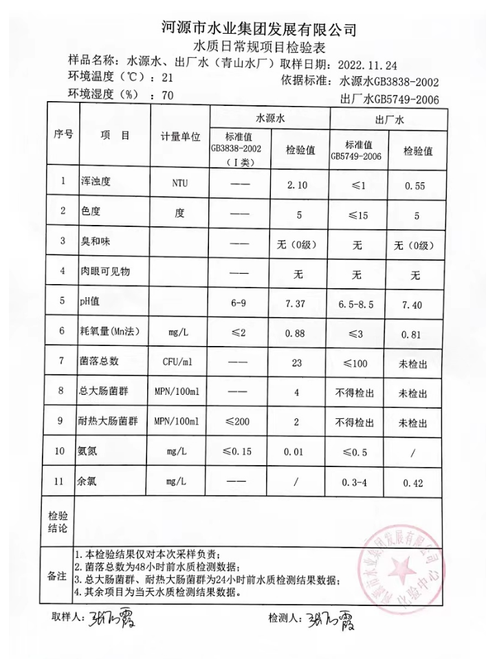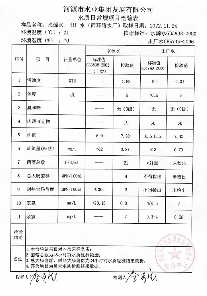 2022年11月24日水質(zhì)檢驗報告
