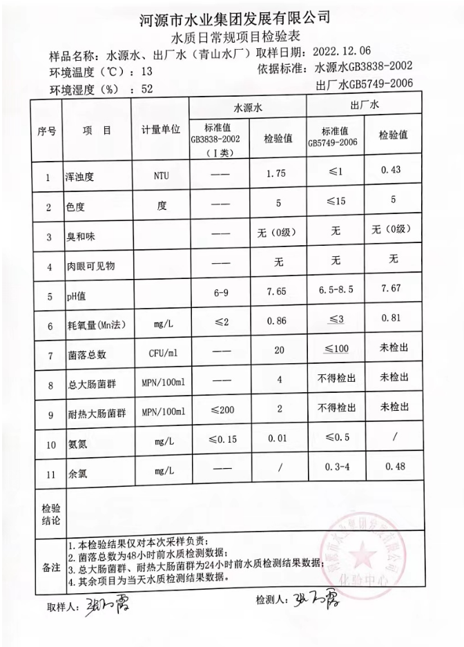 2022年12月6日水質(zhì)檢驗(yàn)報(bào)告