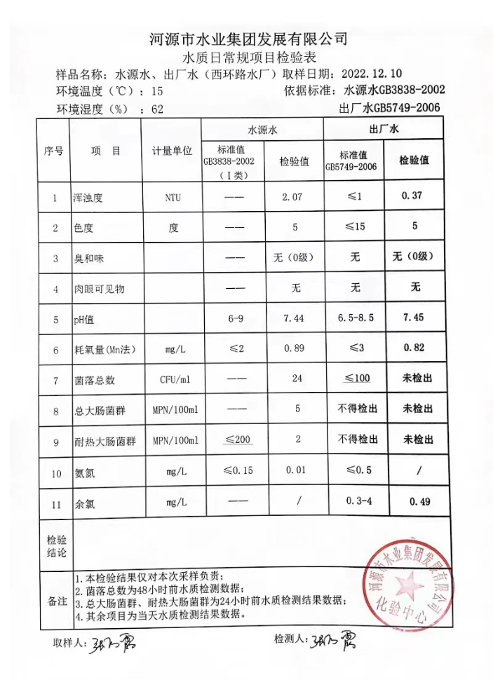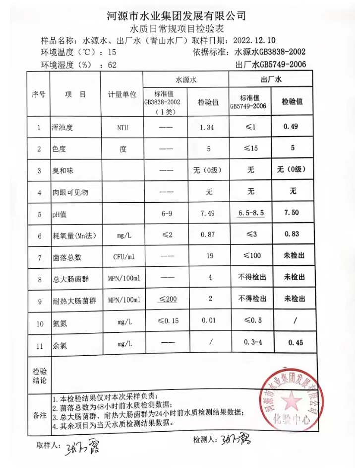 2022年12月10日水質(zhì)檢驗報告