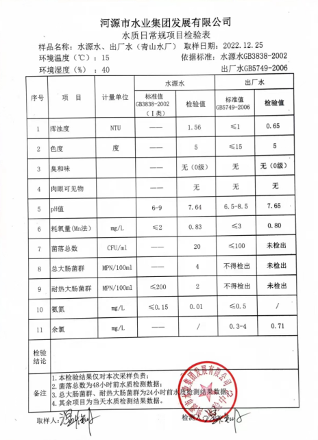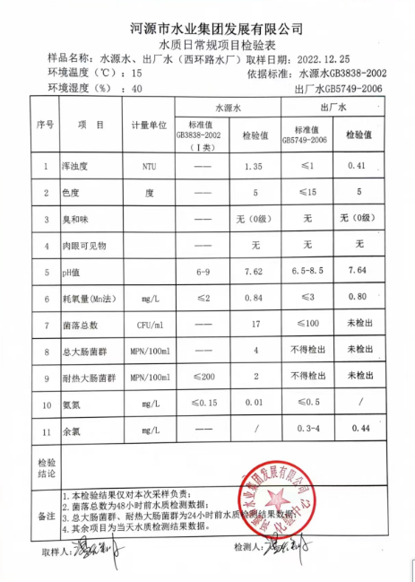 2022年12月25日水質(zhì)檢驗(yàn)報(bào)告
