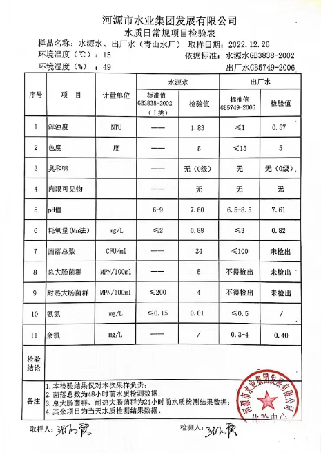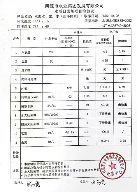2022年12月26日水質(zhì)檢驗(yàn)報(bào)告