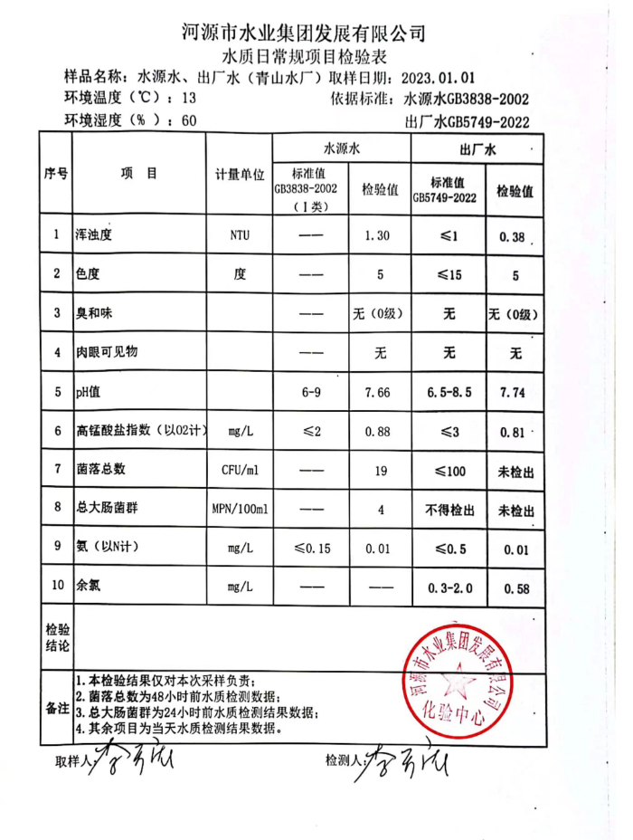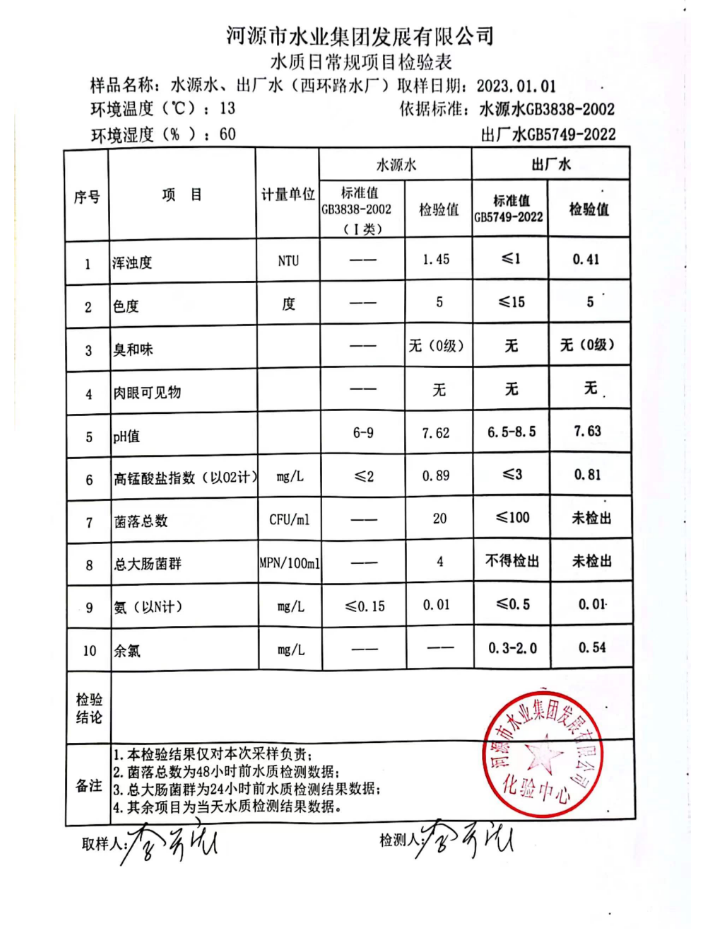2023年1月1日水質(zhì)檢驗(yàn)報(bào)告