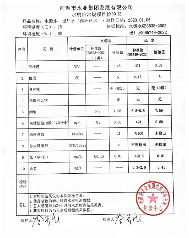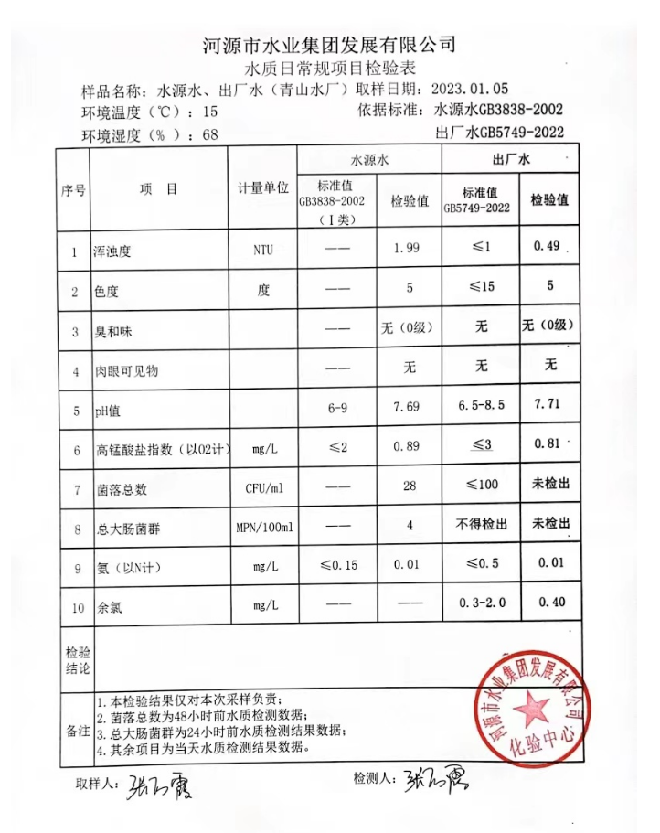 2023年1月5日水質(zhì)檢驗(yàn)報(bào)告