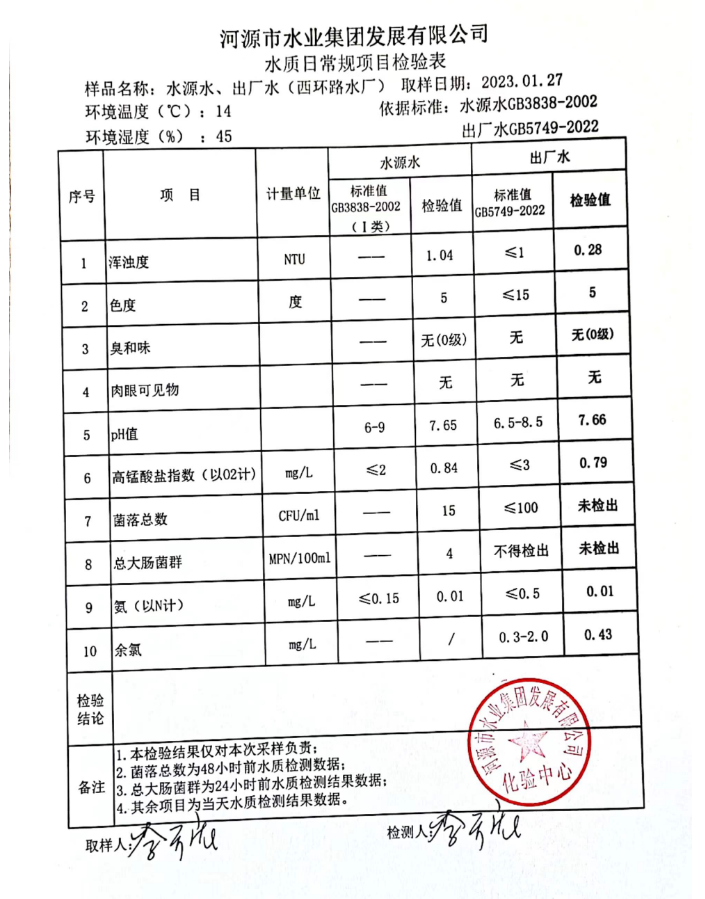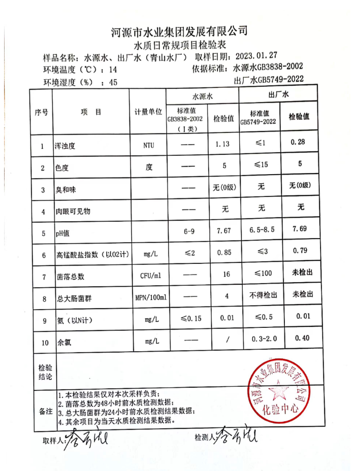 2023年1月27日水質檢驗報告
