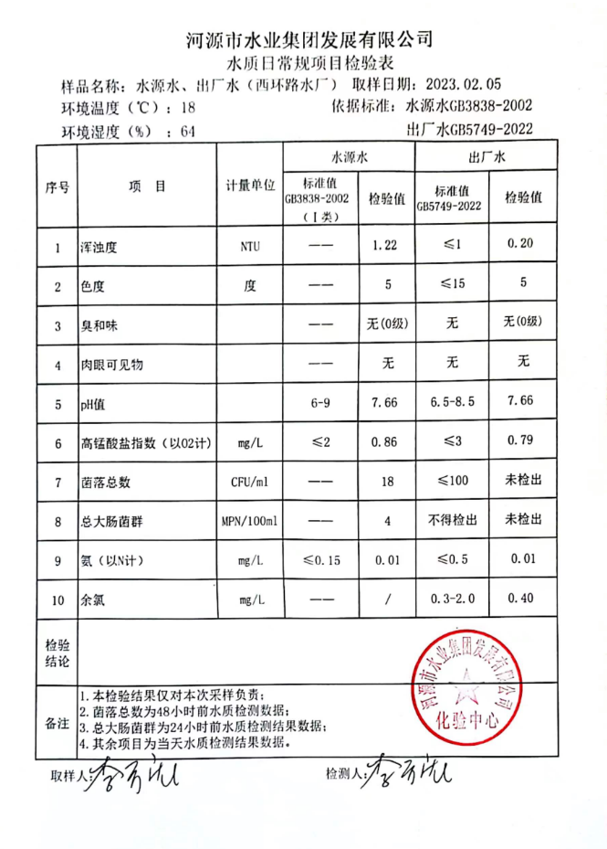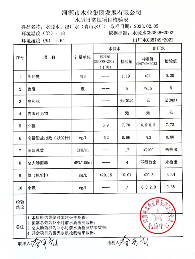 2023年2月5日水質(zhì)檢驗(yàn)報(bào)告