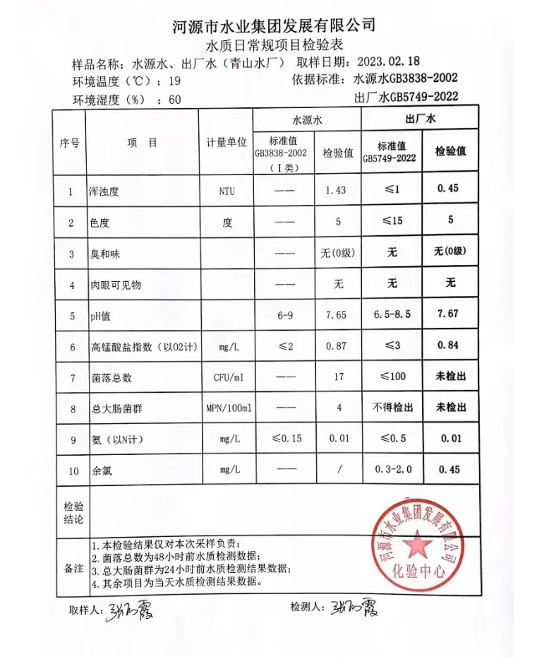 2023年2月18日水質(zhì)檢驗(yàn)報(bào)告